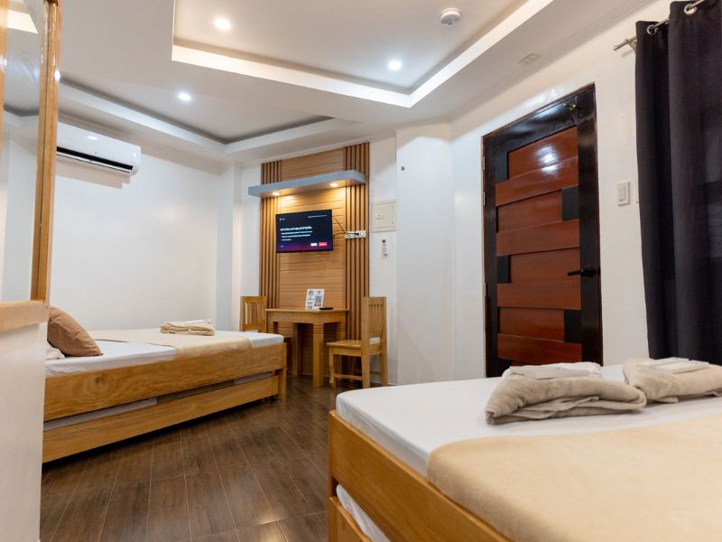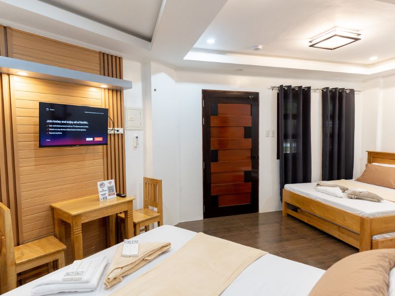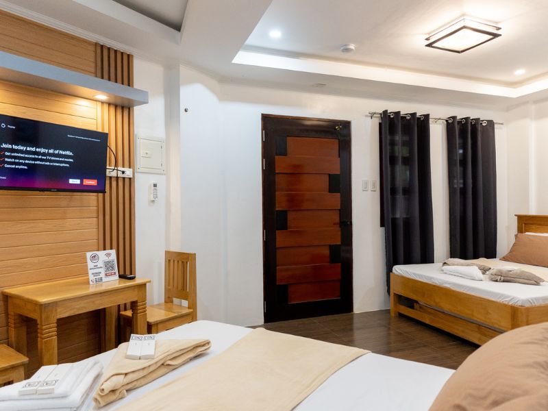 Wide Parking Area Free WiFi Secured with CCTV Smart TV Air Conditioning Smoke Detector Private Bathroom and Toilet (Shower and Bidet) Towel Cabinet Mirror Trash Cans Common Kitchen Guest Kits Shampoo Bath Soap Bath Soap Toothbrush and Toothpaste